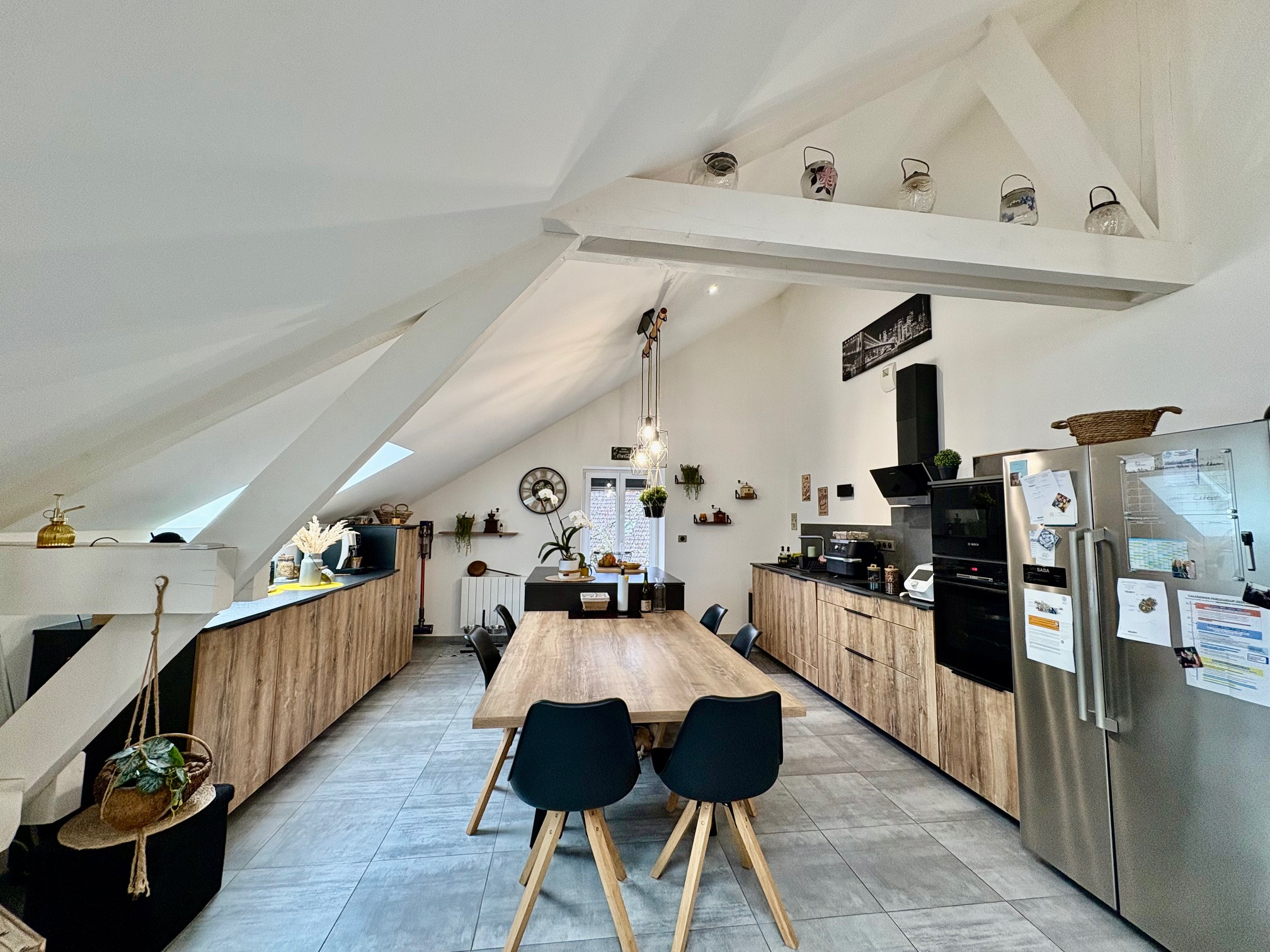 ✨ Coup de Cœur : Superbe appartement de Charme à Héricourt Laissez-vous séduire par ce magnifique appartement de caractère, situé au 2ème et dernier étage d'un petit immeuble de standing en pierre. Entièrement rénové avec goût, ce bien rare allie le cachet de l'ancien (poutres apparentes, volumes) et le confort moderne d'une classe énergétique C. Un Espace de Vie Spectaculaire : Le cœur de l'appartement est une pièce de vie magistrale de 68 m². Baignée de lumière grâce à ses nombreuses fenêtres de toit, elle offre : Un vaste salon-séjour chaleureux avec son poêle à bois (consommation réduite : 3 à 4 stères/an). Une cuisine ouverte entièrement équipée. Une hauteur sous plafond impressionnante mettant en valeur une magnifique charpente apparente. Côté Nuit & Prestations: L'espace privé a été pensé pour le confort de toute la famille : 3 chambres spacieuses Une salle de bains moderne de plus de 11 m² avec douche et WC. Le plus technique : Électricitéet isolation isolation refaite. Chauffage mixte bois/électrique pour une gestion énergétique optimale. Terrain privatif avec terrasse : un véritable coin de verdure pour vos soirées d'été. Garage double + stationnement facile devant. Cave voûtée pleine de charme. Surface : 130 m² habitables (110 m² Loi Carrez). Copropriété : Syndic bénévole, charges maîtrisées (env. 76 €/mois incluant assurance et travaux). DPE : Classe C (Confort thermique garanti). Cadre : Immeuble de caractère, façade pierre, environnement calme et verdoyant dans une impasse. Ce bien aux volumes généreux et à la luminosité exceptionnelle n'attend que vous. Montant estimé des dépenses annuelles d’énergie pour un usage standard : entre 1237 € et 1673 € par an. Prix moyens des énergies indexés sur l’année 2021, 2022, 2023 (abonnements compris). Bien soumis au statut de la copropriété. Copropriété de 21 lots dans un petit immeuble au calme dans une impasse. Budget prévisionnel annuel estimé : 912 €. Aucune procédure en cours. Pour toute information ou pour organiser une visite, contactez Christelle 03 84 20 61 57